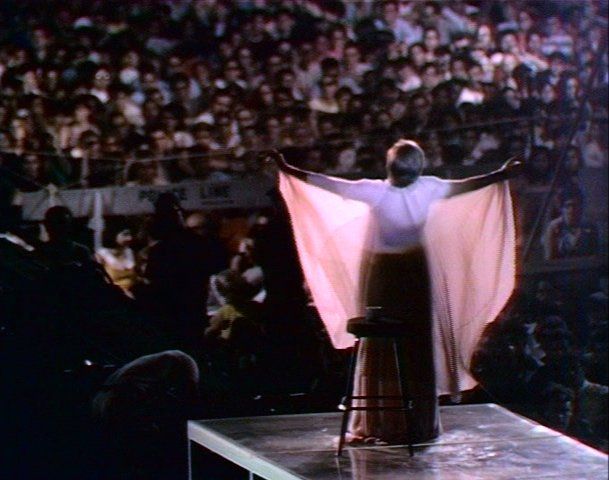 Barbra walked down the Plexiglass stage and spread her arms wide to accept the applause of 135,000 fans. Her first song: “Any Place I Hang My Hat is Home.” (Barbra ad libbed to the audience, ”This is home?”)