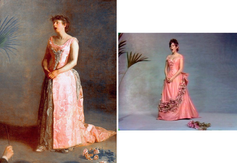 ...part two was achieved through sheer tenacity. Barbra danced out onto a three-ring circus set. A baby elephant named Champagne roared so loudly that a baby llama nearby did a somersault. Barbra sang "Funny Face" in an orange ringmaster's costume. The horse reared, the penguins got sick under the hot lights and had to be carted off to a refrigerated area behind the set. The leopard refused to pose.