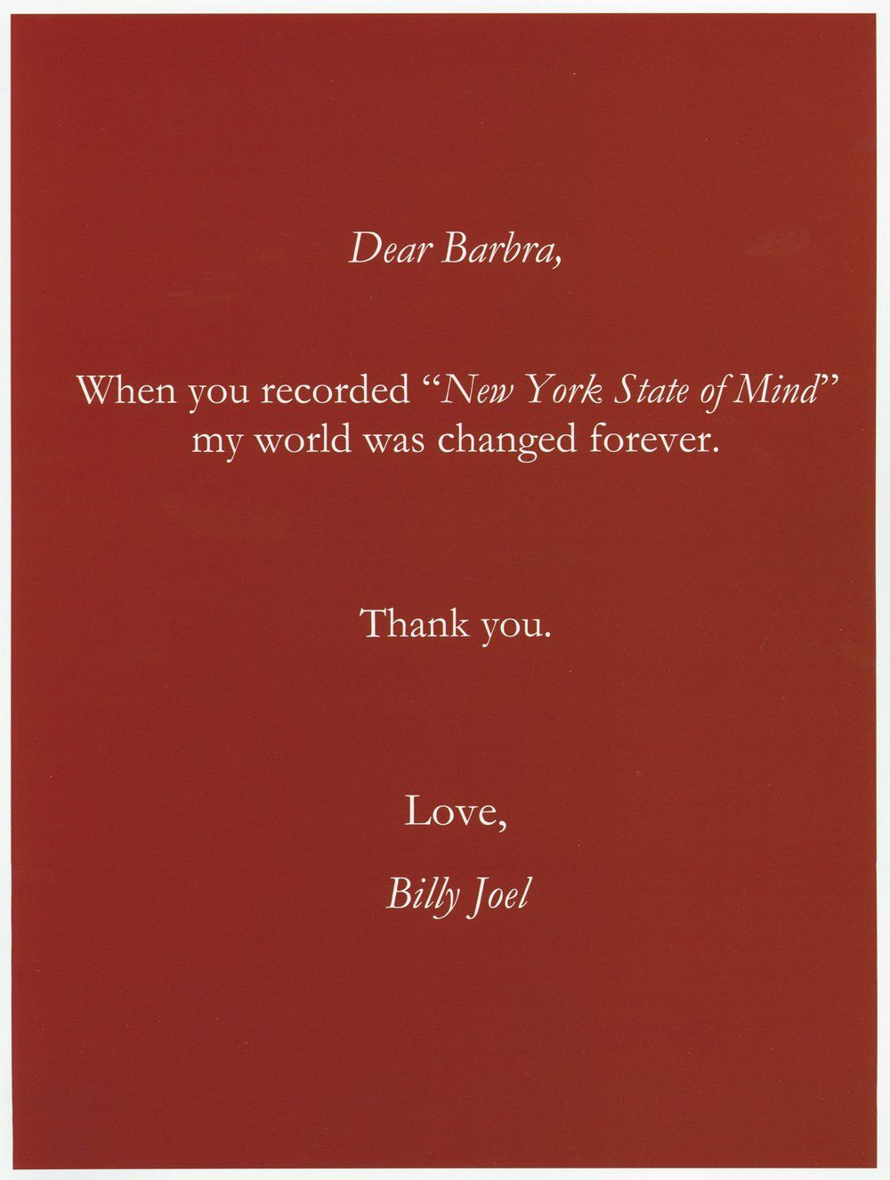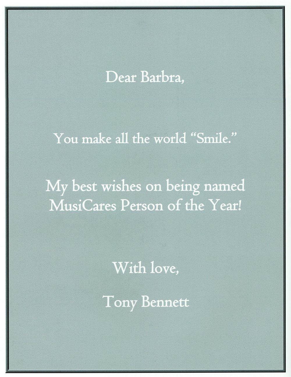 Streisand quoted Hans Christian Andersen: “When words fail, music speaks.”