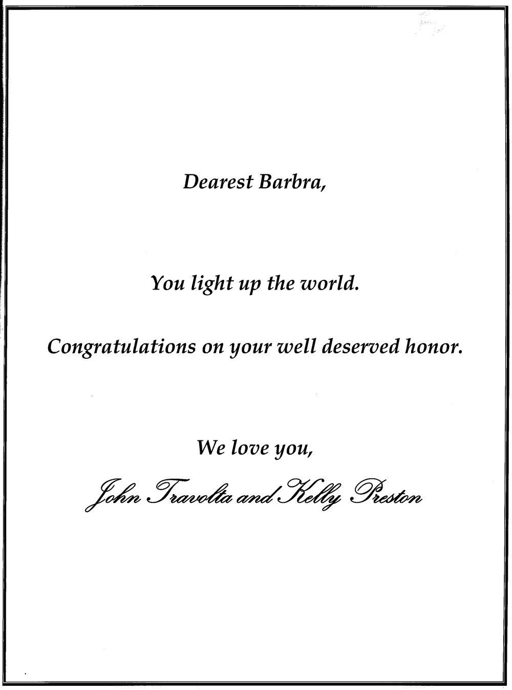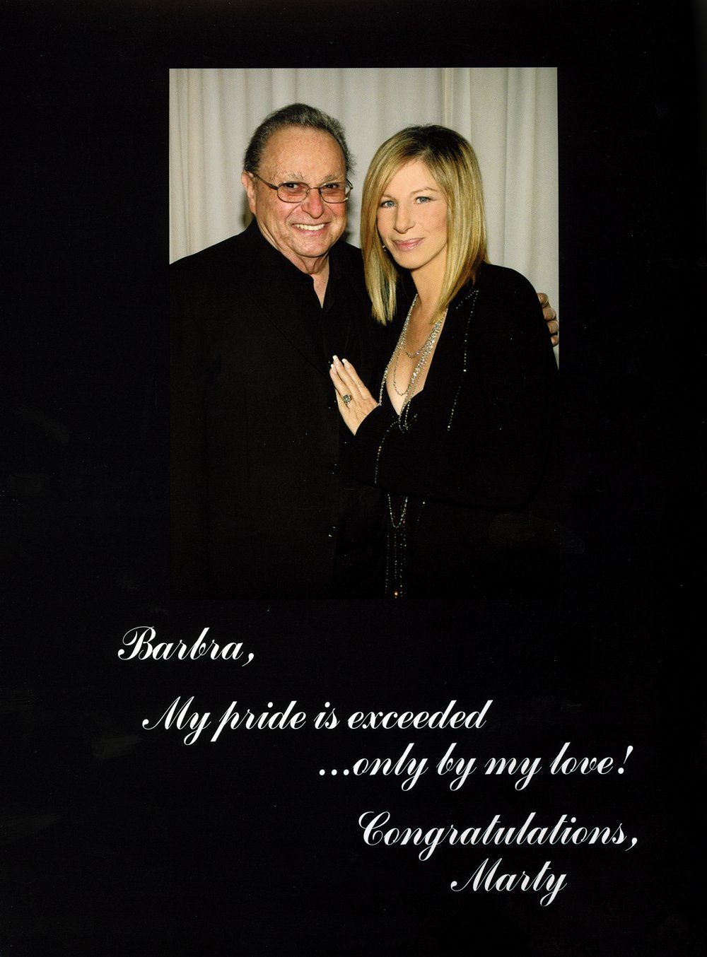 Streisand thanked her associates and colleagues, including longtime manager Marty Erlichman. “Marty discovered me in the neonatal unit of Brooklyn Hospital,” she joked.